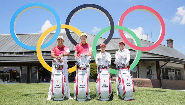 メダル獲得に挑むゴルフ日本代表メンバーの、左から松山英樹、星野陸也、畑岡奈紗、稲見萌寧(C)共同通信社