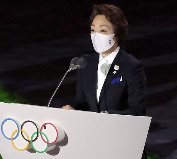 ホラ、ちゃんと写ってるだろう?(東京五輪閉会式での橋本聖子組織委会長) (C)真野慎也/JMPA