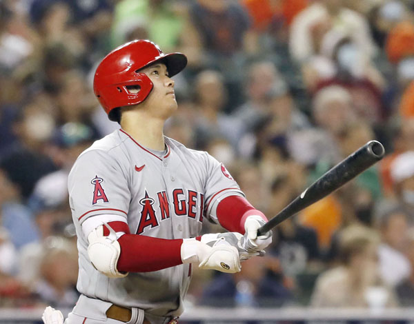タイガース戦八回、40号本塁打を放つ大谷(C)共同通信社
