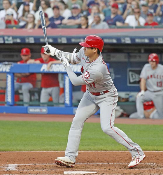 3回、右前打を放つエンゼルス・大谷(C)共同通信社