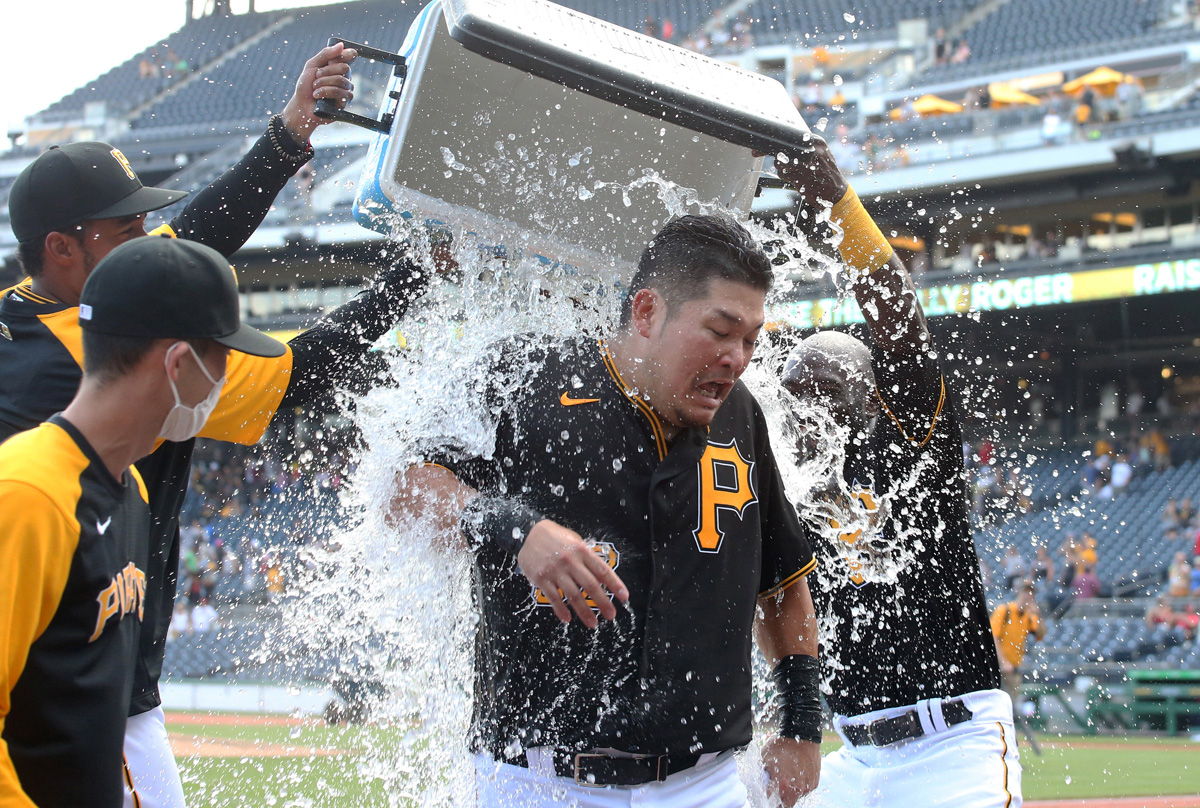 手洗い祝福を受ける筒香(C)ロイター/USA TODAY Sports