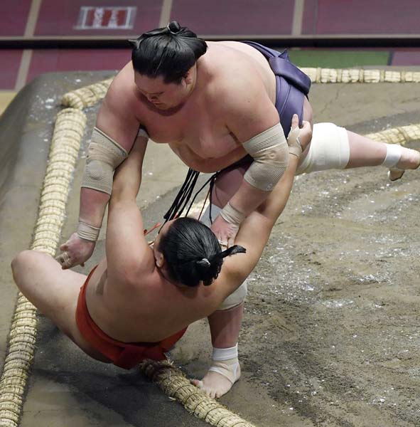 照ノ富士、圧倒(C)共同通信社