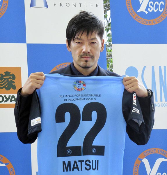 入団会見に臨んだフットサルFリーグのYS横浜の松井大輔(C)共同通信社