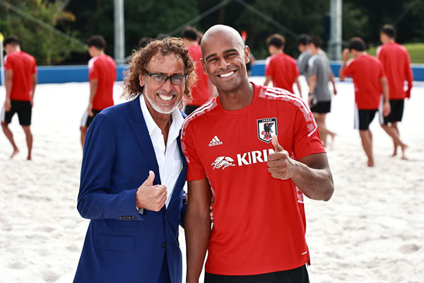 ラモス瑠偉・前ビーチサッカー日本代表監督(左)とオズ(C)Norio ROKUKAWA/office La Strada