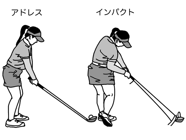 インパクトゾーンでは右腕は左腕よりも低い位置をキープ