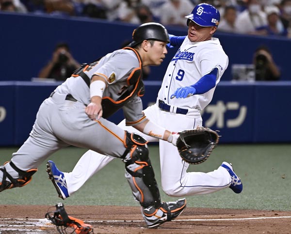 四回、投手の柳に打たれ、中日に先制を許す(C)共同通信社