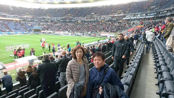 フランクフルトで試合を観戦する両親(提供写真)