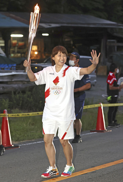 23年前の声援が蘇った(2021年東京五輪、山梨の聖火リレーで)/(C)共同通信社
