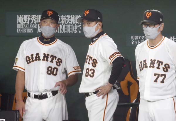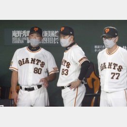 左から阿部作戦コーチ、原監督、元木ヘッドコーチ(C)日刊ゲンダイ