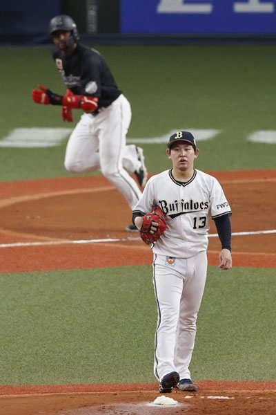 投げ勝った佐々木朗(C)共同通信社