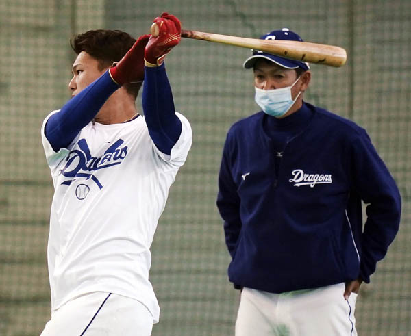 臨時コーチとして石川昂を指導した立浪氏(右)/(C)共同通信社