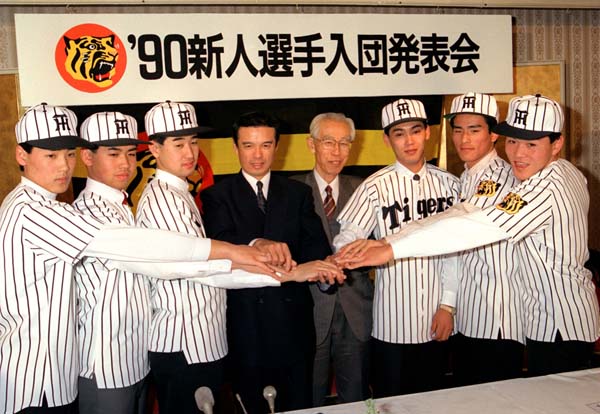 新庄(左端)と中村監督(央)/(C)共同通信社