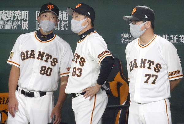 この3人は来季も安泰だが…(左から阿部作戦コーチ、原監督、元木ヘッドコーチ)/(C)日刊ゲンダイ