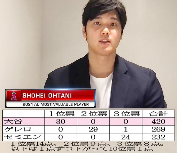 MLB番組で受賞の喜びを語る大谷(「MLB.com」から)