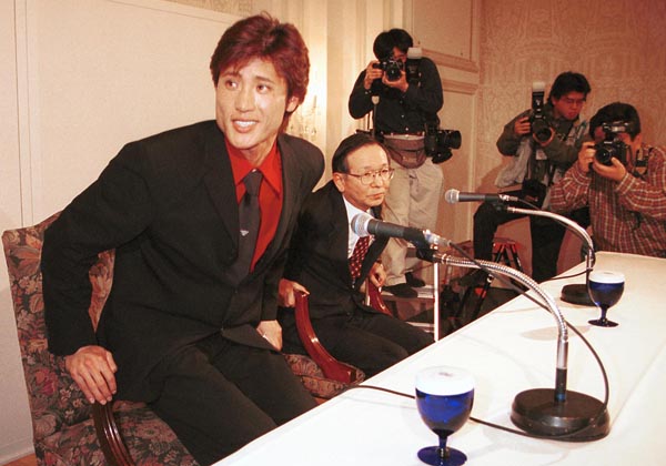 阪神との交渉を終え、メッツ入りを表明(右は、筆者)/(C)日刊ゲンダイ