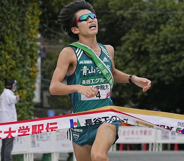 胸の青学の文字の上に…(C)共同通信社