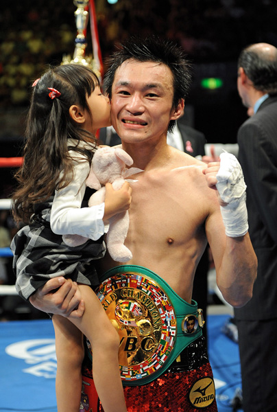 世界戦勝利後、愛娘・小姫ちゃんからのキス(提供写真)