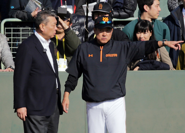 春のキャンプで談笑する原監督(右)と江川卓氏(C)日刊ゲンダイ