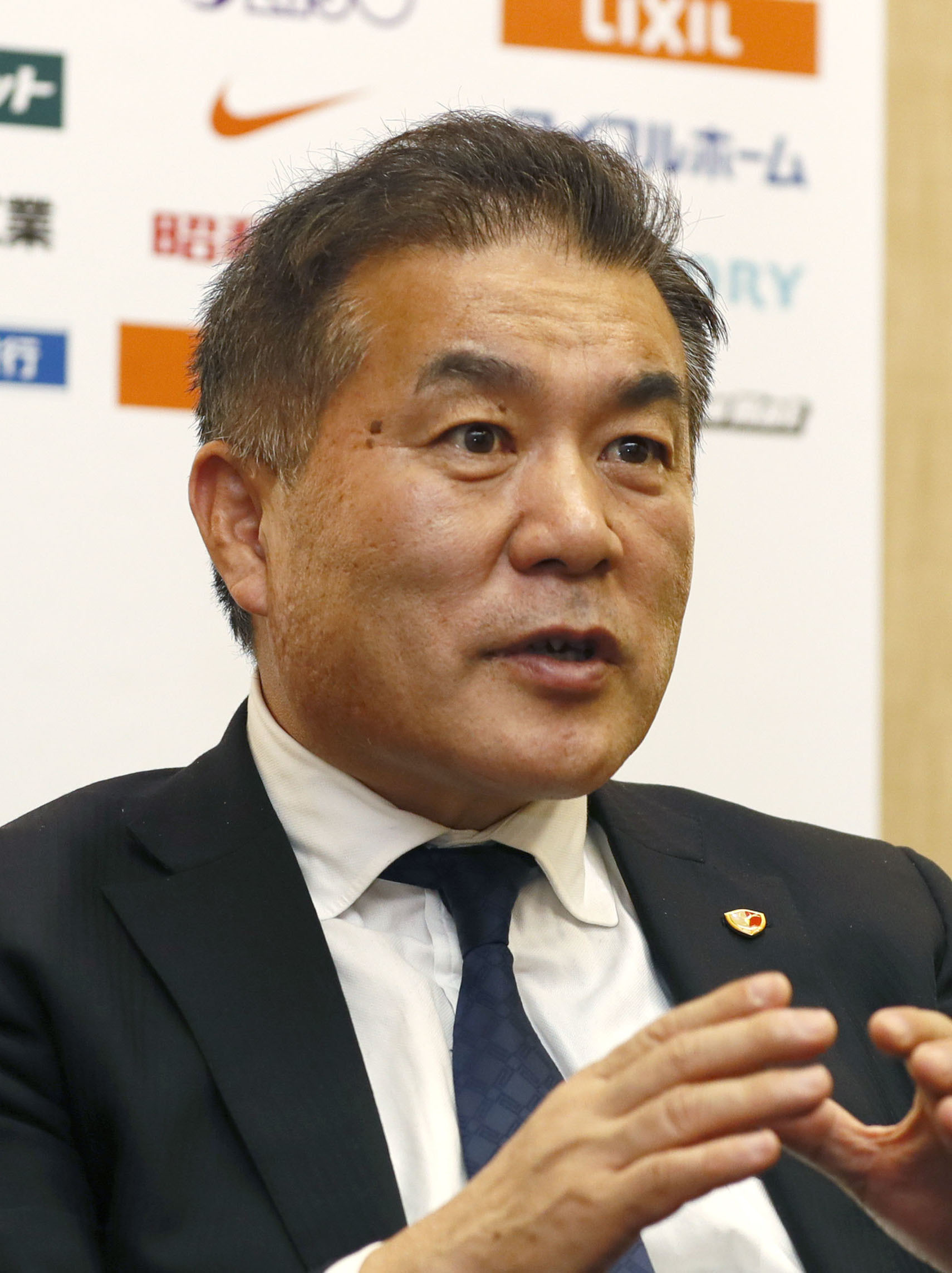 取材に応じるJ1鹿島の鈴木満強化部長(C)共同通信社