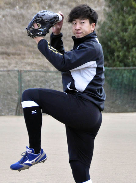 キャッチボールを行う巨人・翁田大勢(C)共同通信社