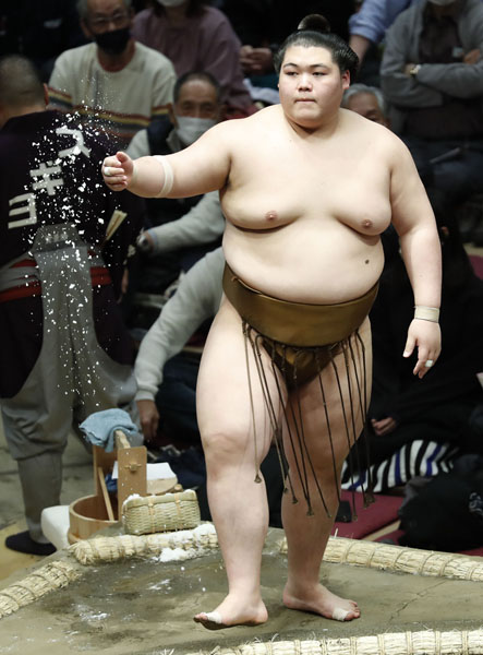 今場所初めての幕内の土俵を踏んだ「大鵬の孫」、王鵬(C)日刊ゲンダイ