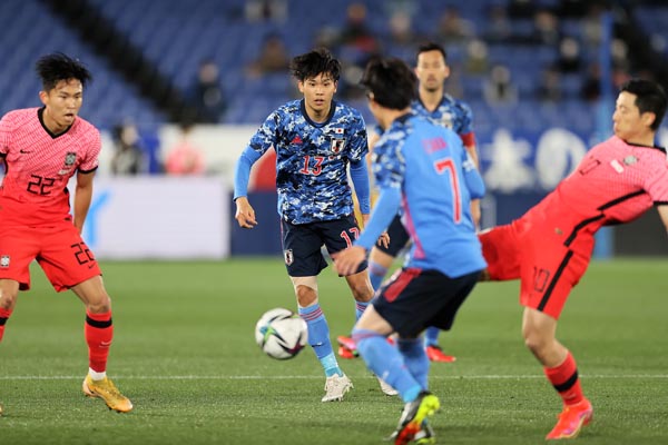 代表デビューとなった2021年3月の韓国戦で先制ゴールを決めた山根(C)JMPA