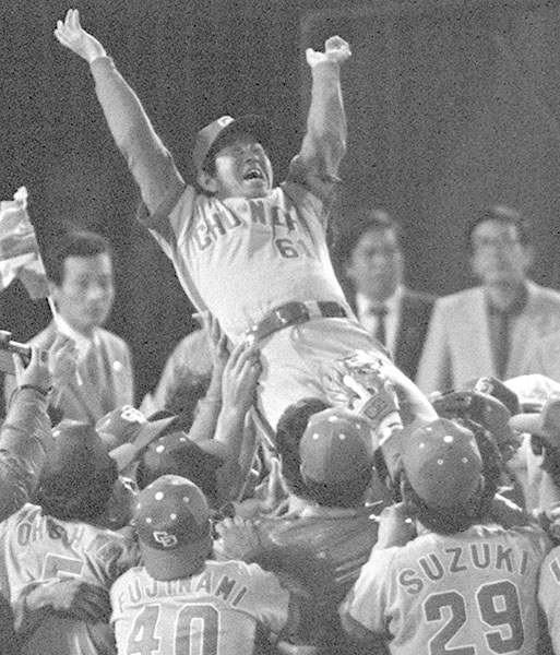 1982年に8年ぶりのリーグ優勝を決め、胴上げされる近藤監督(C)共同通信社