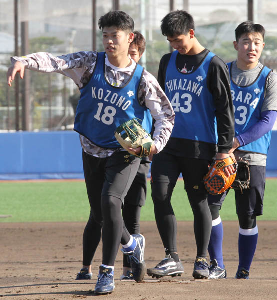 DeNAの新人合同自主トレで汗を流すドラ1の小園ら(C)日刊ゲンダイ