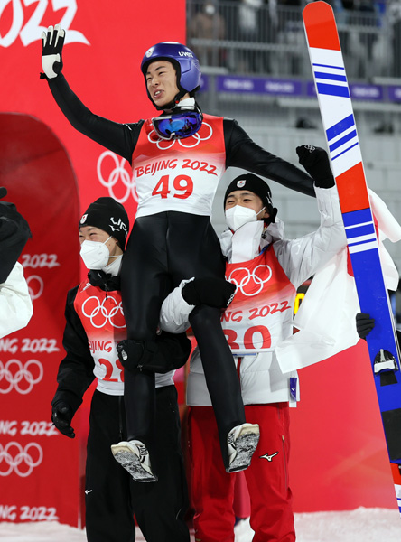 チームメートに担がれる小林陵(C)JMPA