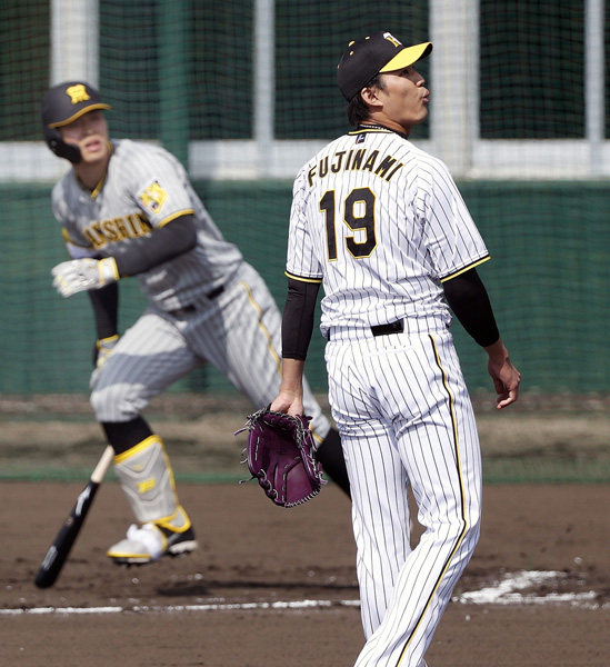 阪神・投球スタイルがカギ(紅白戦での藤浪)/(C)共同通信社