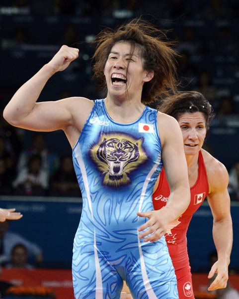 憧れの人は吉田沙保里(2012年ロンドン五輪、レスリング女子3連覇を決めガッツポーズ)/(C)共同通信社