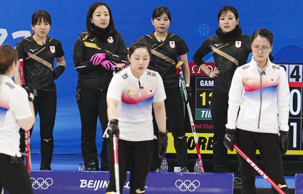 メガネ先輩(前列右)にやられたロコ・ソラーレ(C)共同通信社