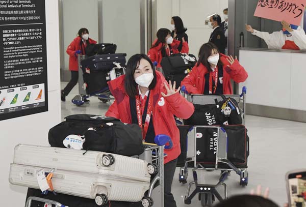 日本へ帰国した藤沢らLSメンバー(代表撮影)