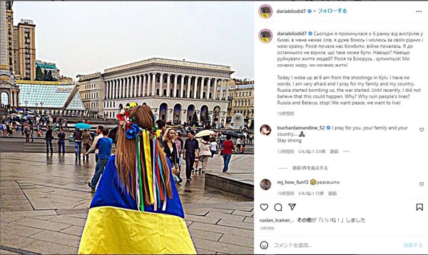 ウクライナの首都キエフから(ダリア・ビロディド選手のインスタグラム)