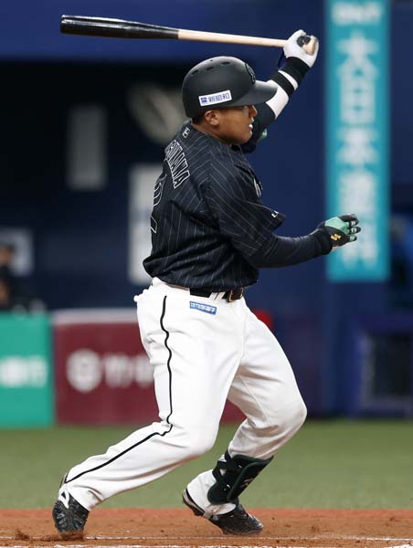 松川、技ありのオープン戦初安打!(C)共同通信社