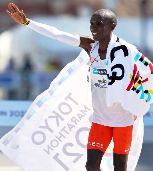 東京マラソン男子で2時間2分40秒の大会新で優勝し、笑顔のキプチョゲ(代表撮影)