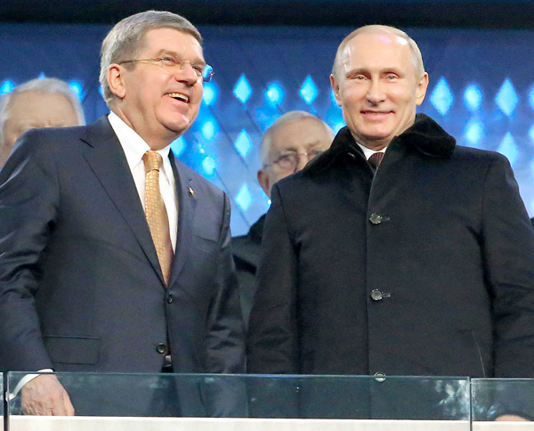 IOCは再びプーチン大統領に裏切られた(左はバッハ会長)/(C)共同通信社