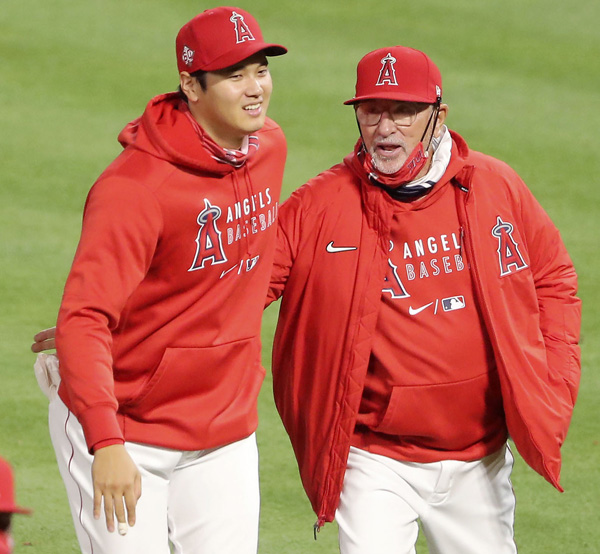 マドン監督(右)と大谷(C)共同通信社