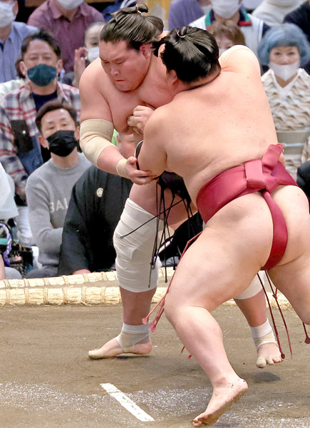 苦手意識を払拭できず…(大栄翔に送り出しで敗れた照ノ富士)/(C)日刊ゲンダイ
