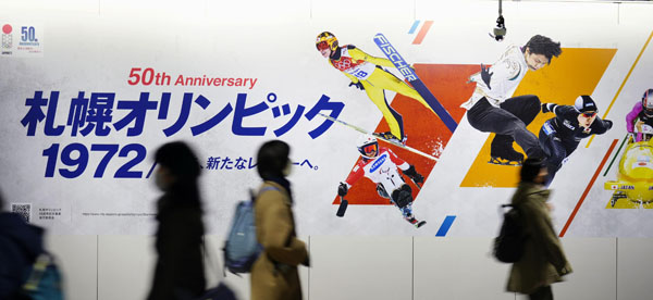 立候補に突き進む(札幌市の地下街に掲示された札幌冬季五輪50周年記念事業のポスター)/(C)共同通信社