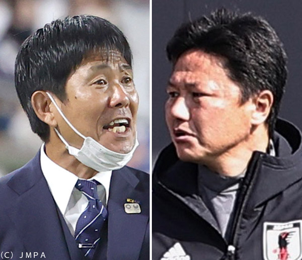 好対照な森保監督(左)と大岩監督(C)Norio ROKUKAWA/office La Strada