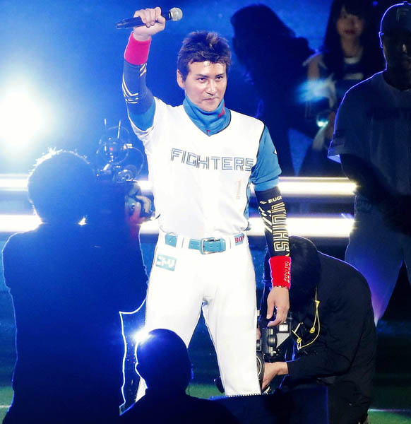 札幌に戻ってきた背番号1、派手な演出で登場した新庄監督(C)共同通信社