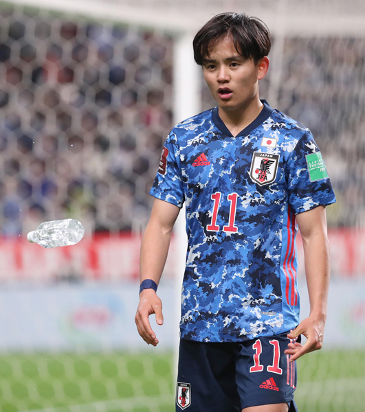 試合後に渋い顔でペットボトルを放り投げたFW久保(C)JMPA
