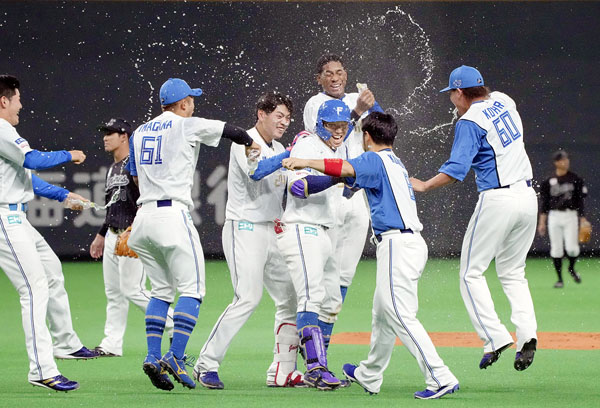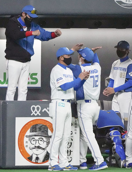 新庄監督(左)もガッツポーズ!(C)共同通信社