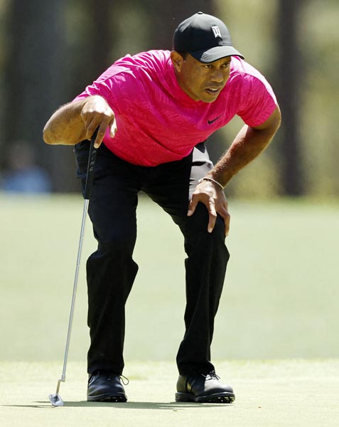 痛々しいライン読みのウッズ(C)ロイター