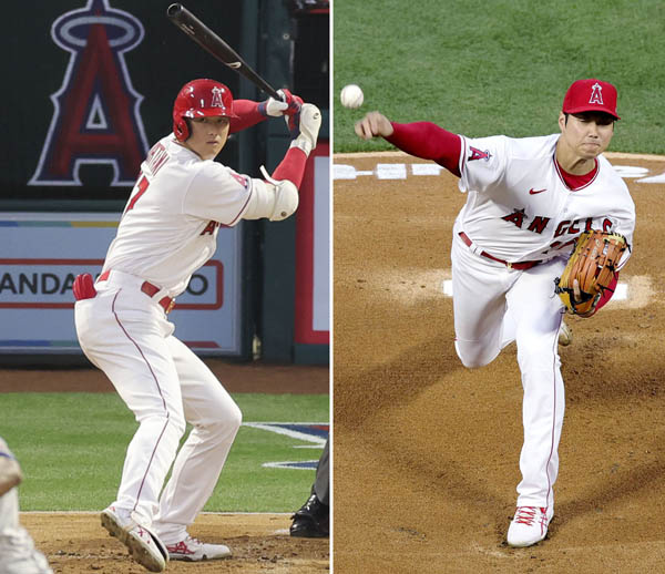 開幕戦に先発投手と「1番・DH」で出場したエンゼルスの大谷(C)共同通信社
