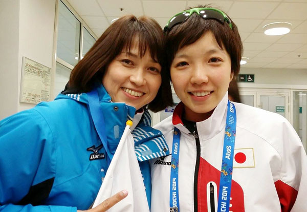 2014年ソチ五輪、小平奈緒選手と筆者(岡崎朋美さん提供)