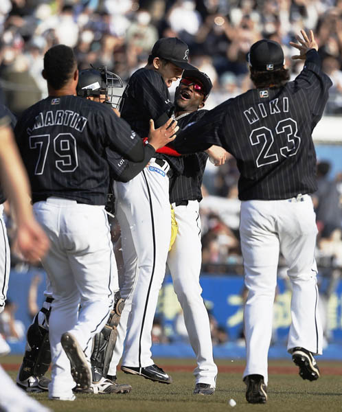 ナインも大興奮(中央が、佐々木)/(C)共同通信社