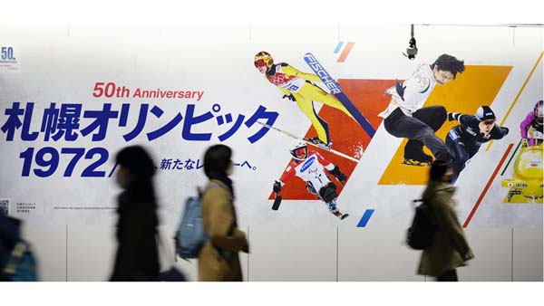 “街頭”の世論調査では、札幌市は50周年記念のバッジやステッカーを市民に贈呈して…(C)共同通信社