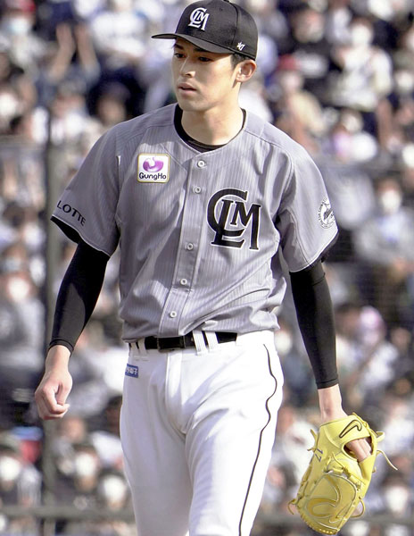 8回まで一人も走者を許さなかった佐々木。0-0のまま交代し、プロ野球史上初となる2試合連続の完全試合は惜しくも逃した(C)共同通信社